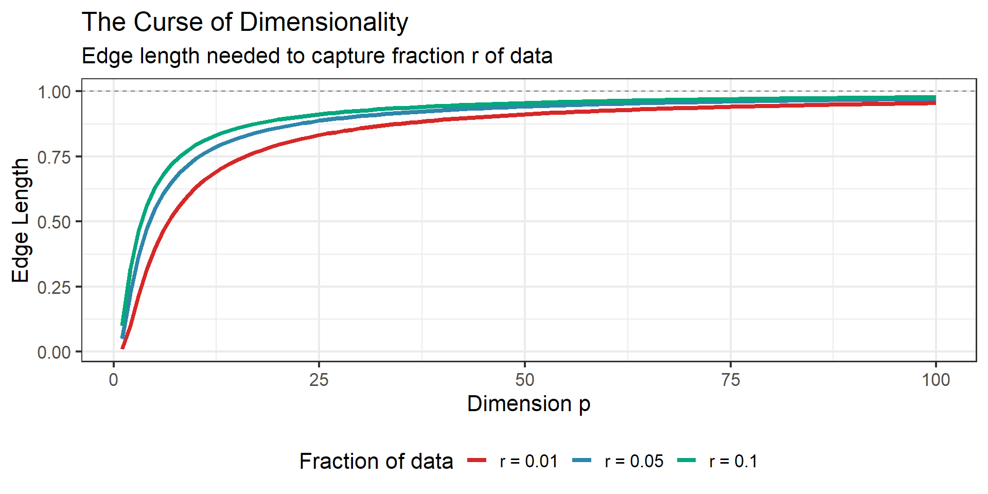 Curse of dimensionality: In high dimensions (\(p \gg n\)), local methods fail — we need structural assumptions