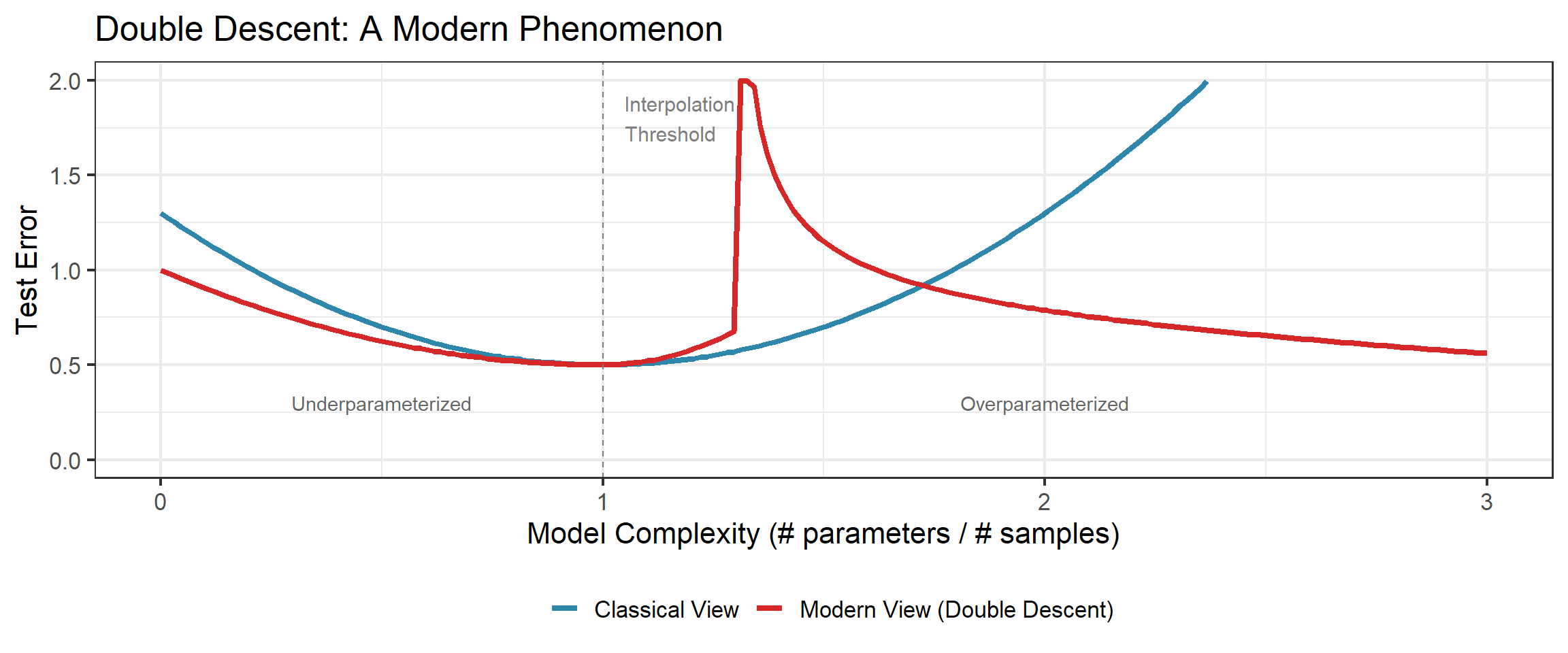 Modern twist: Double descent shows the story is richer than the classical U-curve — stay curious!