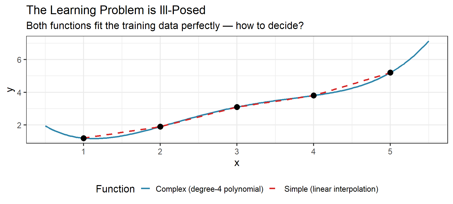 The learning problem is ill-posed — many functions fit the data; Occam’s razor says prefer the simplest
